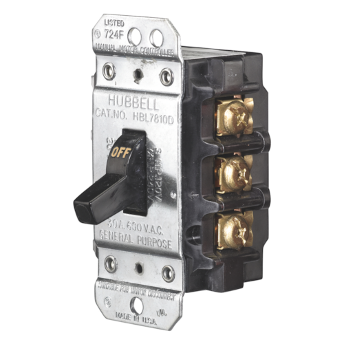 Switches and Lighting Controls, Industrial Grade, Manual Motor Controllers, Motor Disconnects, Three Pole, 30A 600V AC, Back and Side Wired, Black