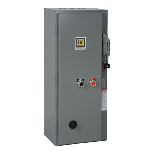Type S nonreversing fusible combination starters are for motor control applications. Combination starters combine the requirements for motor overload and short circuit protection into one package. NEMA Size 2 starters have ratings of up to 25 HP at 480 and 600 VAC poly phase. Combination starter has 30 ampere Class H and K fuse clips. This 3 pole starter is for poly phase applications. Combination starters are available with a wide variety of replaceable coil voltages. Starter has a 110/120 VAC 50/60 Hz operating coil wired for separate control. This nonreversing NEMA combination starter has a melting alloy type overload relay which uses Type B thermal units to sense over current conditions. A painted sheet steel NEMA 3R/12 dusttight enclosure is used to protect this starter. Enclosure is 22.5 inches tall, 10.5 inches wide and 9.59 inches deep. A wide variety of accessories are available for Type S starters. Type S combination starters are UL listed and CSA certified.