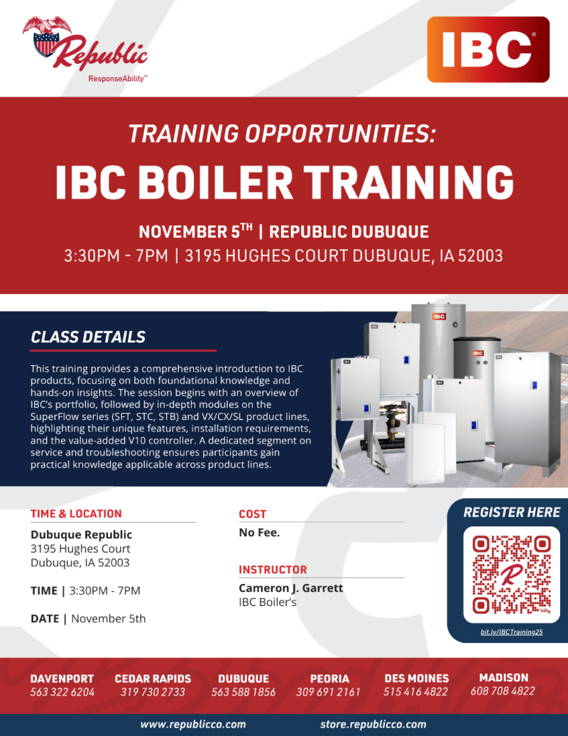 🔧 IBC Boiler Training — Join Us This November! We’re excited to host IBC Boiler Training sessions across Iowa! Gain hands-on experience and in- ...show more